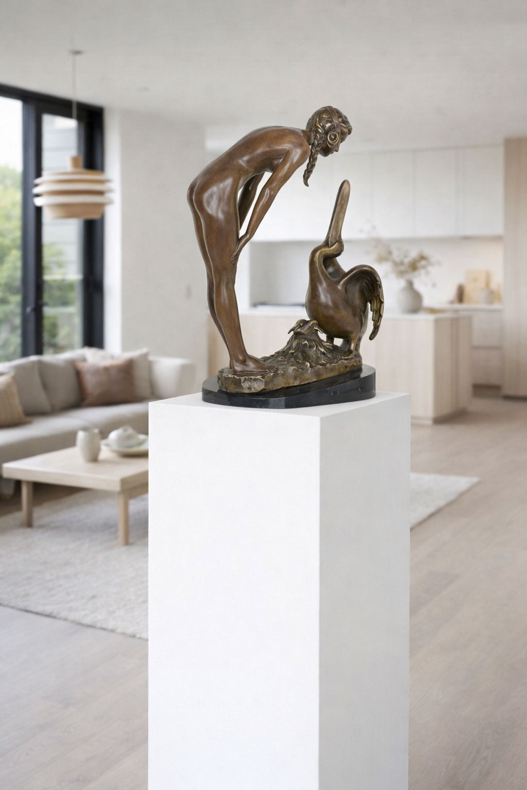 Gefertigt aus schwerer Bronze und präsentiert auf einem echten Marmorsockel, überzeugt die Skulptur durch ihre hochwertige Materialität und feine Ausarbeitung.