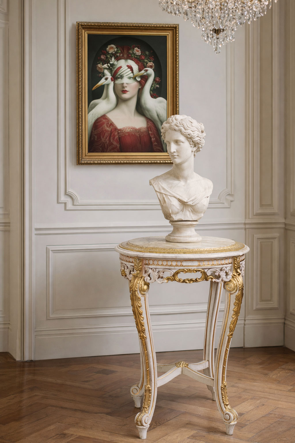 Der Blumentisch „Madame Coco“ ist ein elegantes Stilmöbel im opulenten Barockstil, das klassische Handwerkskunst und luxuriöse Ausstrahlung auf harmonische Weise vereint.