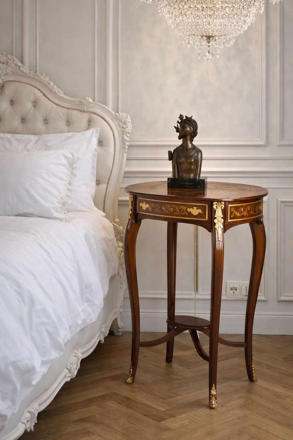 Mit seinen kompakten Maßen eignet sich der Beistelltisch „Marquise de Montespan“ ideal für stilvolle Wohnkonzepte, klassische Interieurs oder als Akzentmöbel in modernen Räumen mit historischem Anspruch.