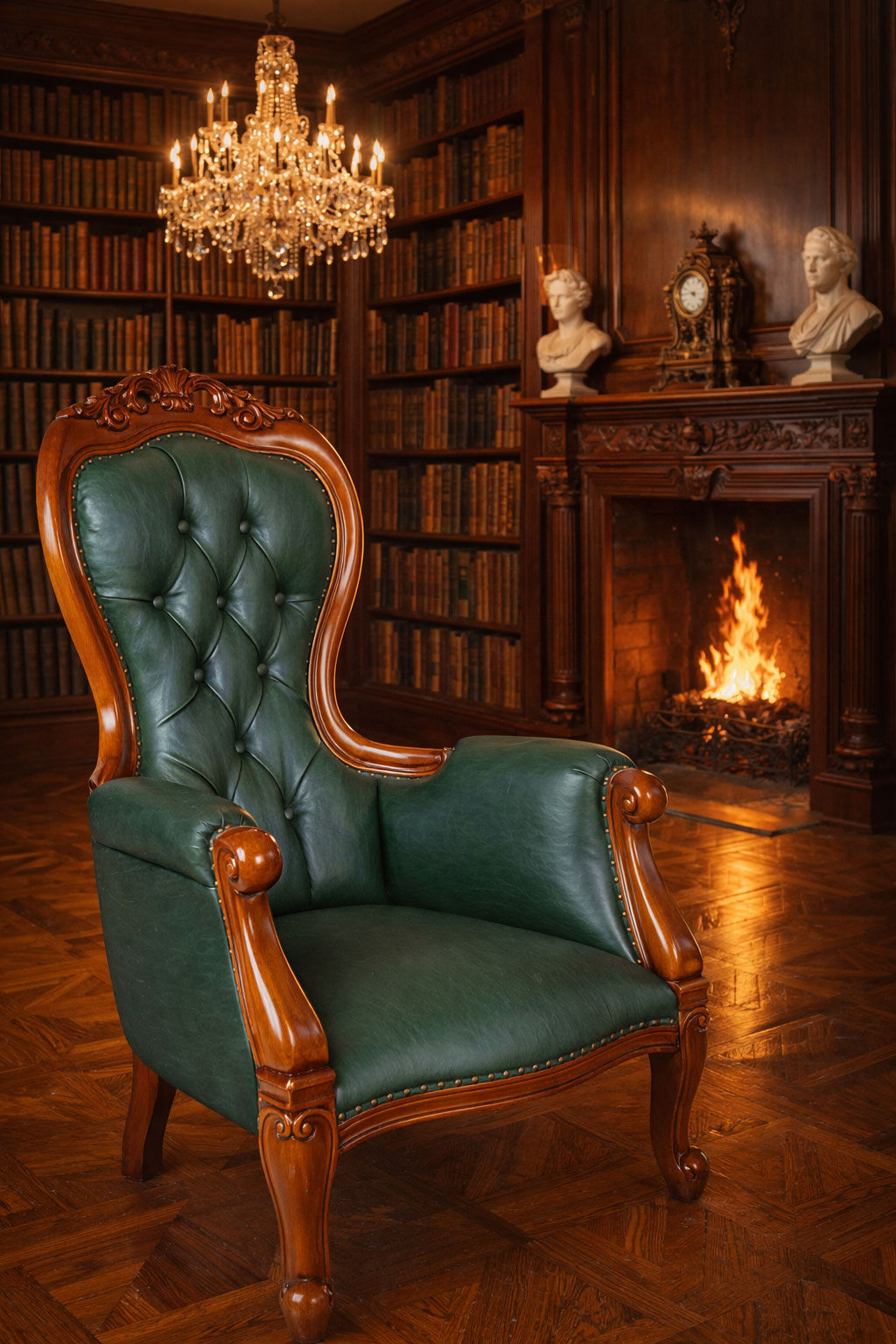Dank der großzügigen Sitzfläche und der komfortablen Sitzhöhe eignet sich der Sessel ideal für Bibliothek, Arbeitszimmer, Wohnzimmer oder stilvolle Empfangsbereiche.