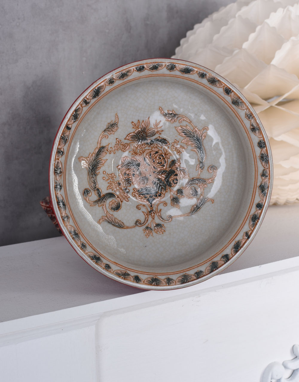 Jede einzelne Schale ist ein Unikat, das durch die aufwendige Handbemalung und die charakteristische Krakelee-Struktur seinen einzigartigen antiken Charme erhält.