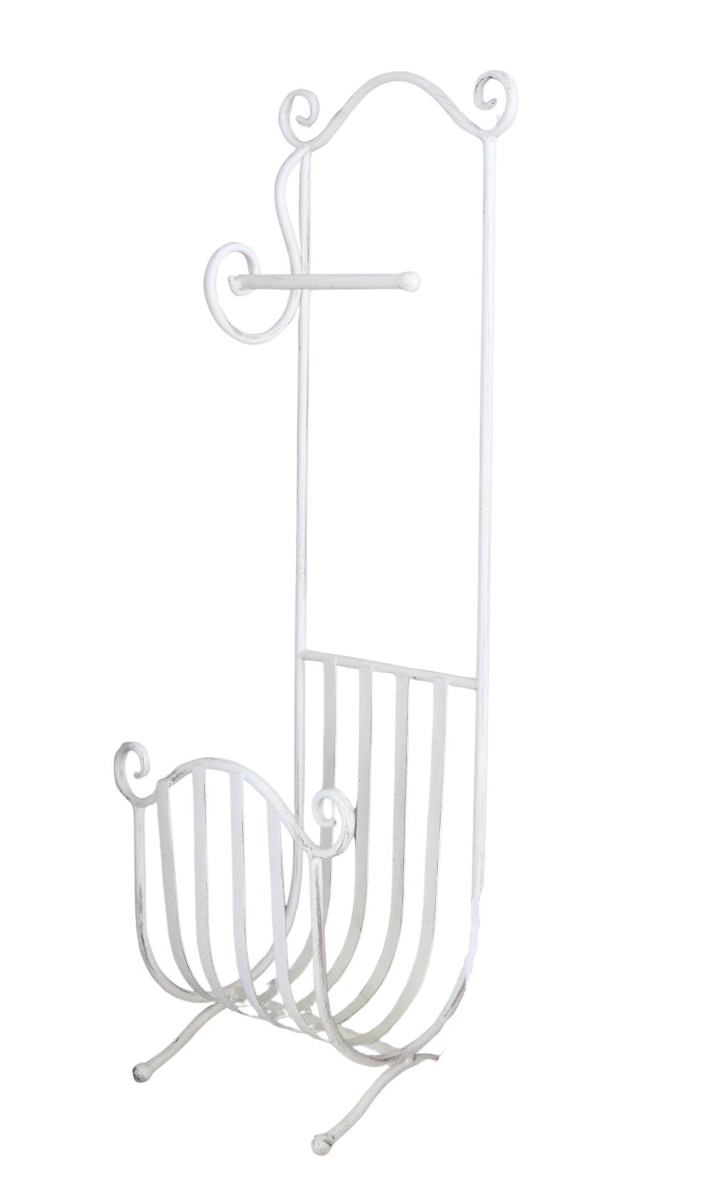 Der Toilettenpapierhalter L´Hotel Paris ist eine nostalgische Dekorationsidee im französischen Landhausstil. Aus bemaltem Metall in Altweiß mit Antik-Look gefertigt, verleiht dieser WC Rollenhalter jedem Badezimmer romantischen Shabby Chic Charme. Ein dekoratives Accessoire mit bewusst gesetzten Gebrauchsspuren. Höhe ca. 70 cm, Breite ca. 22 cm, Tiefe ca. 17 cm.