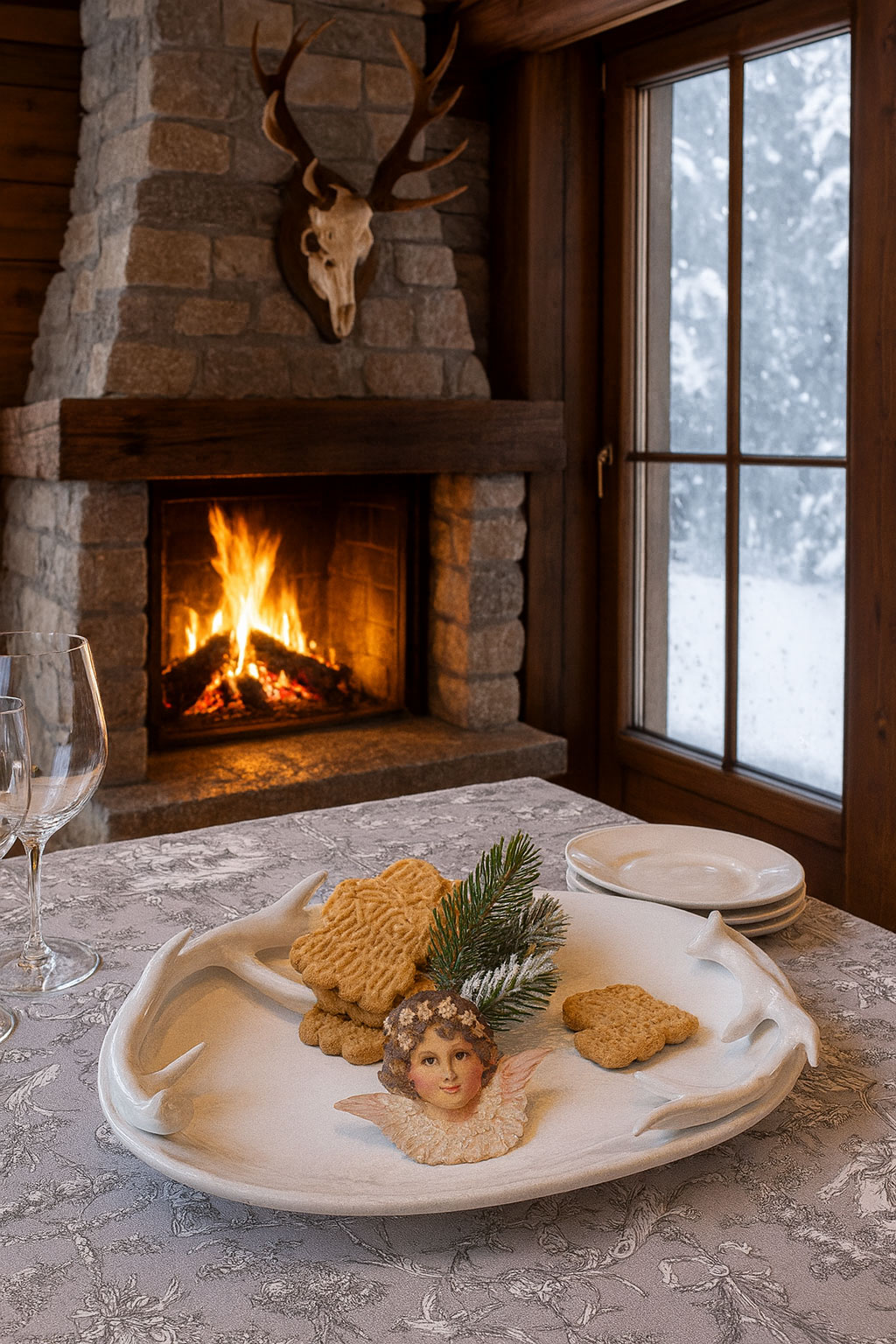 Die kunstvolle Geweih-Dekoration verleiht dem Design eine edle, traditionsreiche Note und erinnert an historische Tafelkultur in herrschaftlichen Jagdschlössern.