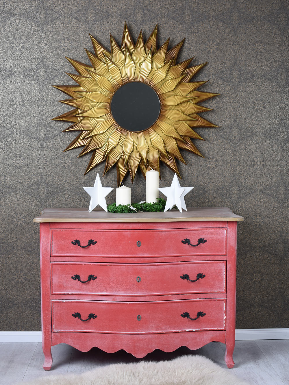 SONNENSPIEGEL "CHATEAU ROKOKO" Gesamtdurchmesser ca. 90 cm / Spiegelglas Durchmesser ca. 26 cm Ohne Dekoration