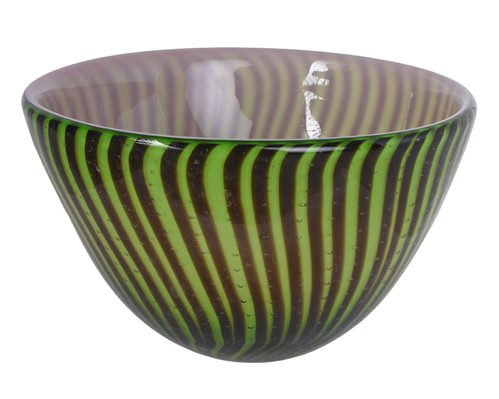 Gefertigt aus mundgeblasenem Glas, überzeugt die Schale durch ihre harmonischen Farbverläufe, feine Lufteinschlüsse und ihre eindrucksvolle Größe.