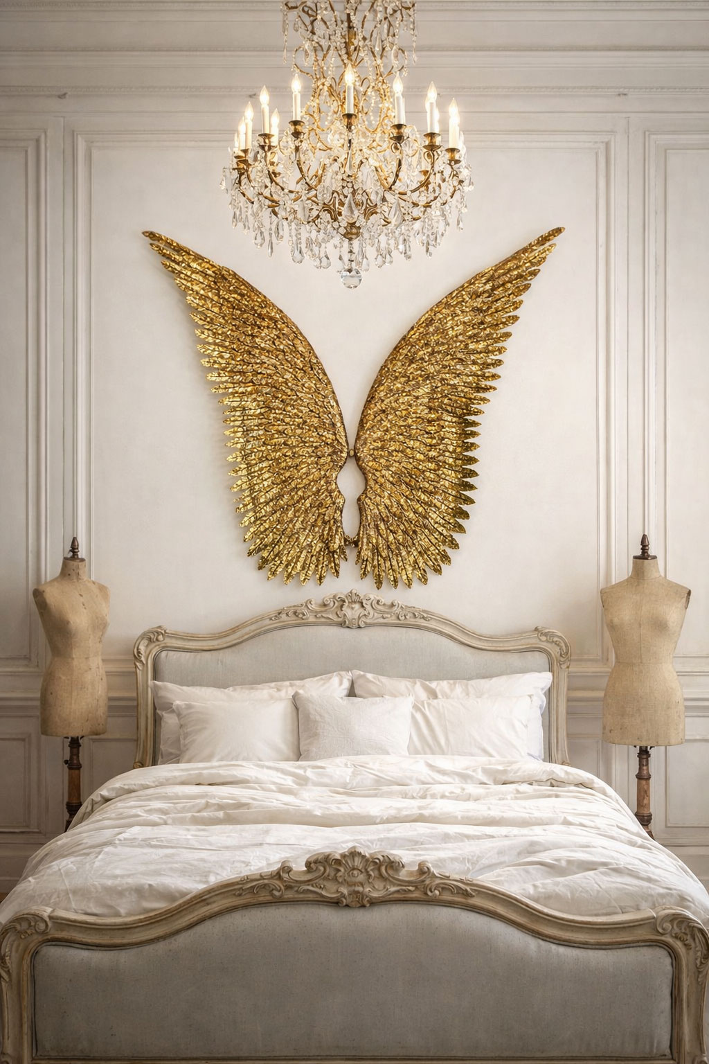 Die Engelsflügel-Wanddekoration „Villa Cupidon“ ist ein majestätisches Dekoobjekt für alle, die das Außergewöhnliche lieben und ihrem Wohnraum eine symbolstarke, emotionale Note verleihen möchten.