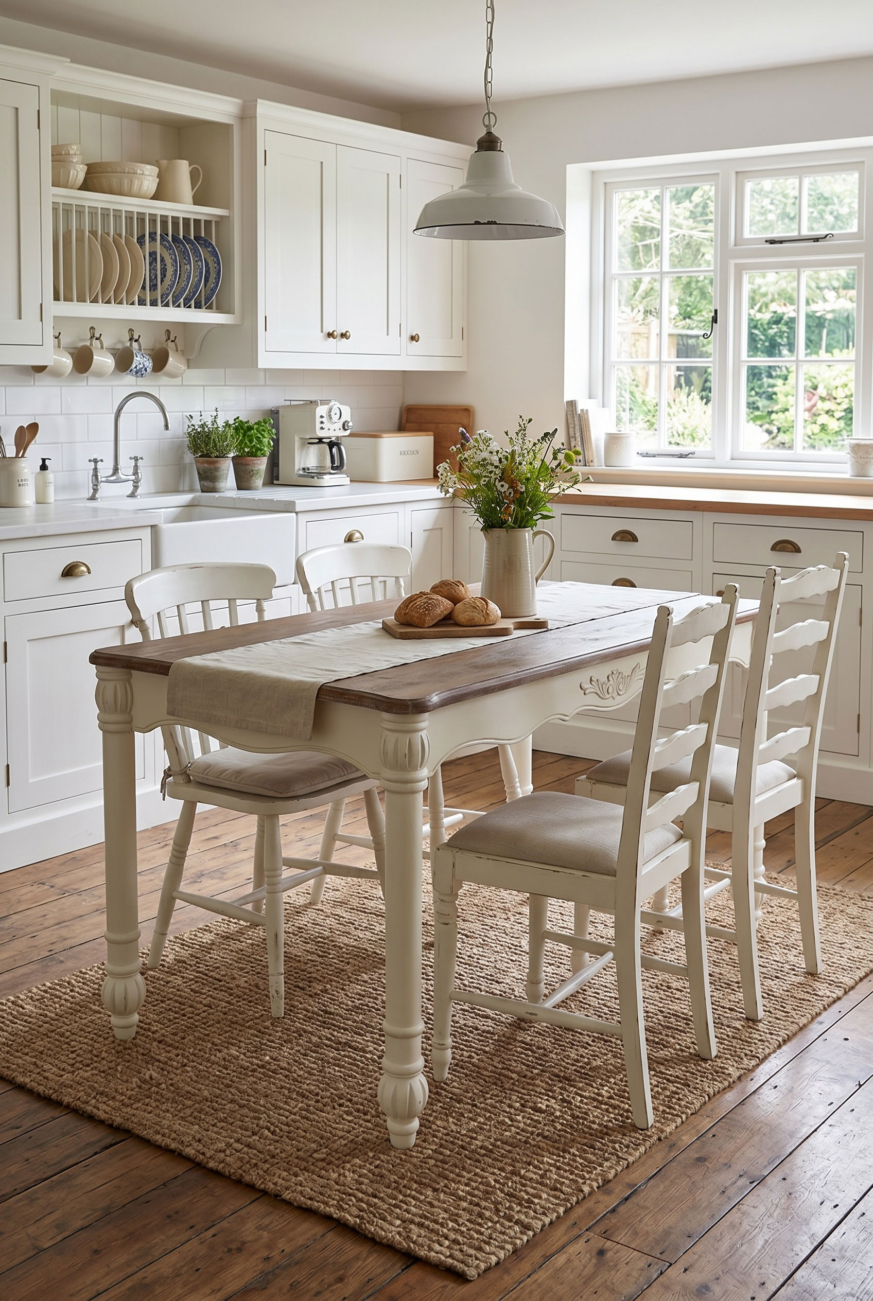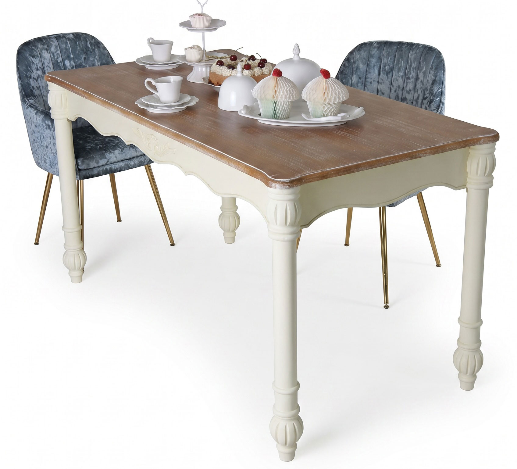 Skandi Esstisch „VILLA ALICIA“ im Landhausstil. Holz im Shabby Chic Look mit Antik-Finish – stilvoller Tisch für Esszimmer und Küche.