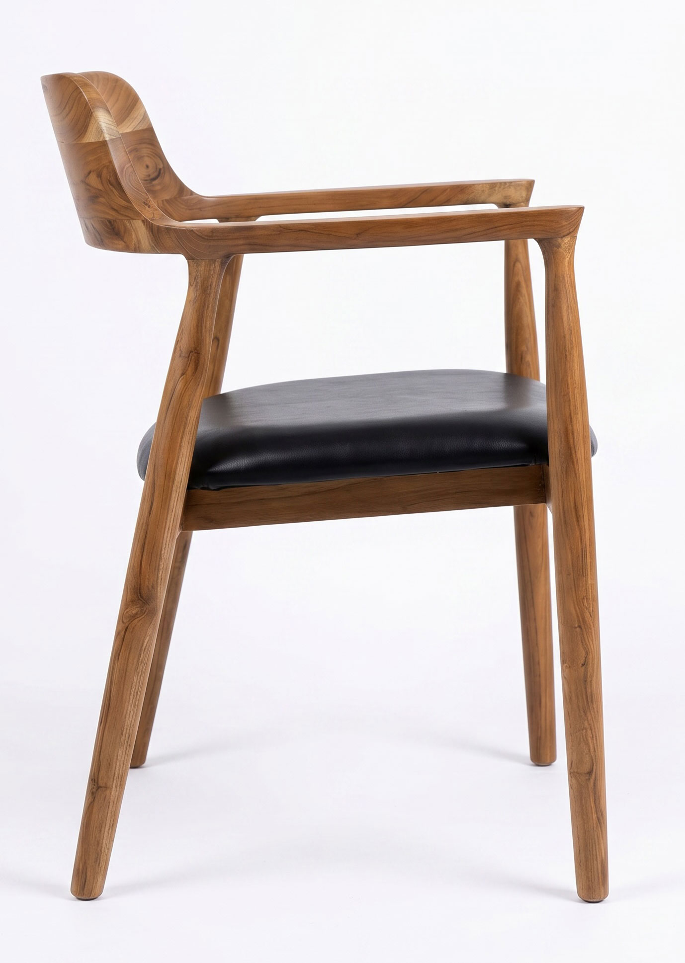 Der Esszimmerstuhl aus Teakholz und hochwertigem Visby-Leder vereint zeitloses Design mit erstklassigem Sitzkomfort und wird so zur stilvollen Ergänzung für moderne wie klassische Wohnräume. Die harmonische Kombination aus natürlichem Holz und edlem Leder verleiht dem Stuhl eine warme, elegante Ausstrahlung.