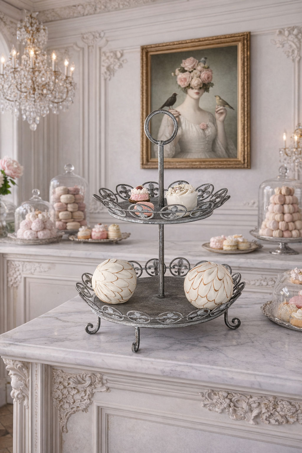Die Servieretagere „Villa Emma“ ist ein stilvolles Dekorationsobjekt, das Funktionalität und romantische Landhausästhetik perfekt miteinander verbindet.
