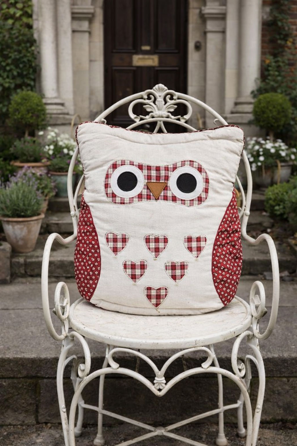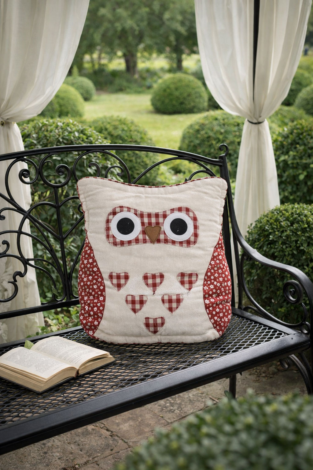 Charmantes EULENKISSEN „VILLA HEDWIG“ – dekoratives Sitzkissen in liebevoller Eulenform. Ideal für Garten, Balkon oder Wohnbereich. Größe ca. 36 cm x 40 cm x 6 cm Lieferung erfolgt ohne Dekoration