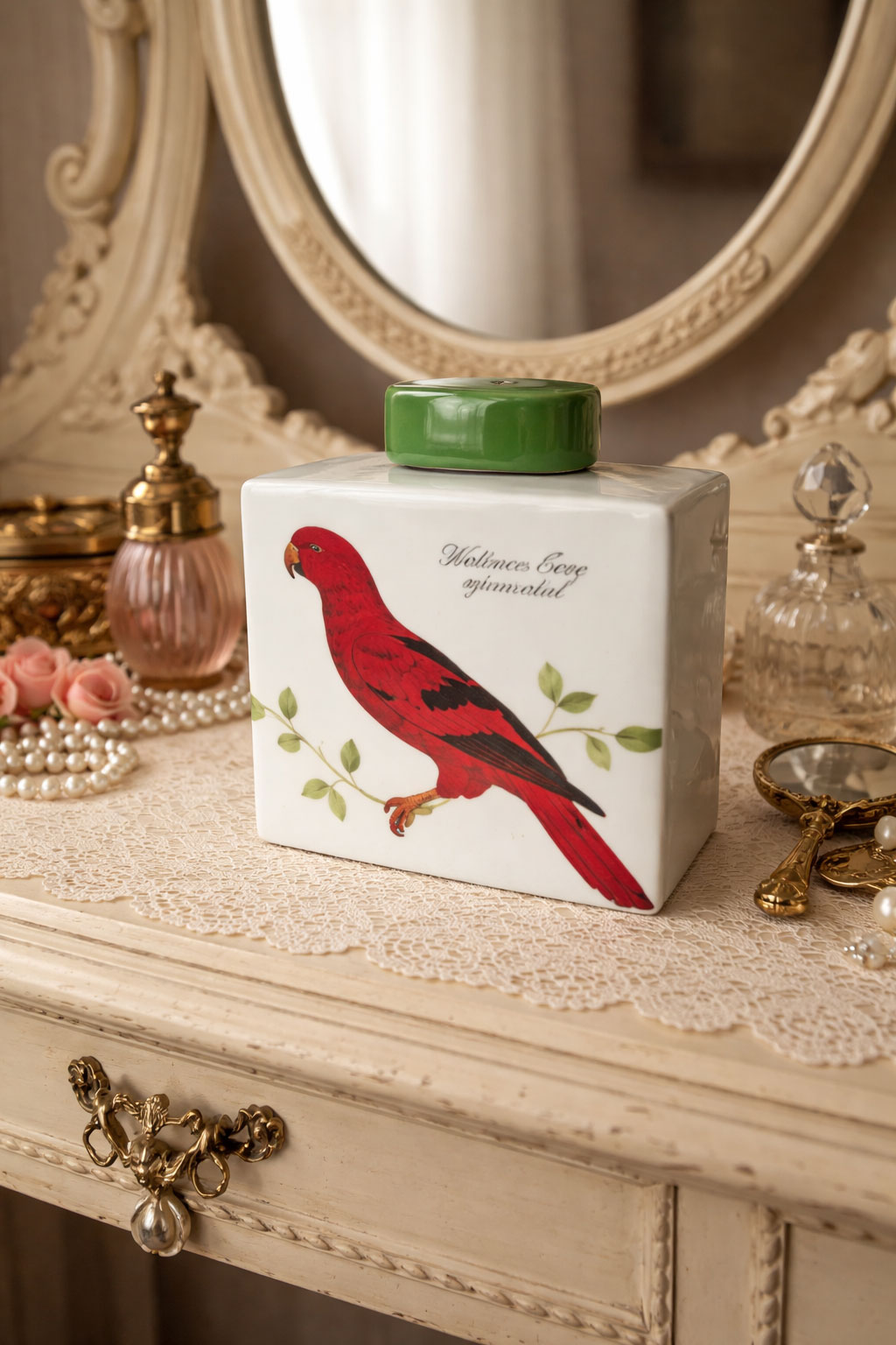 Ideal als stilvolle Badezimmer-Dekoration, auf dem Schminktisch oder in einer Vitrine – diese Porzellandose bringt einen Hauch exotischer Eleganz in Ihr Zuhause.
