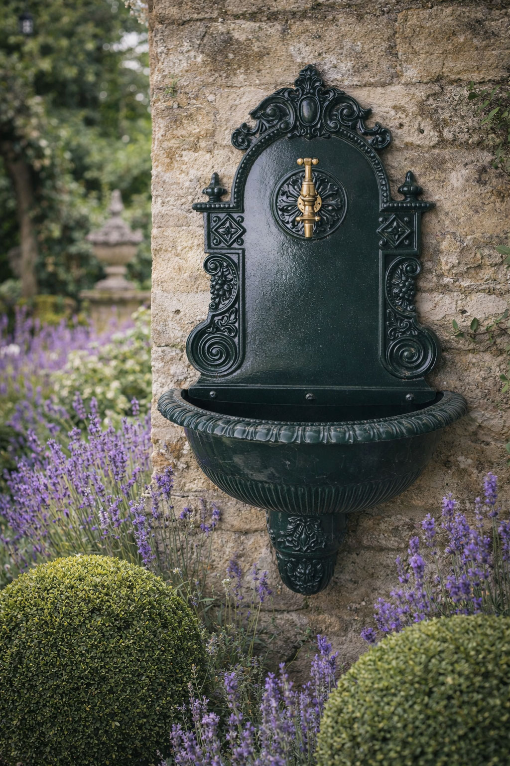 Der historische Wandbrunnen „Jardino Secreto“ ist eine stilvolle Hommage an die klassische Gartenarchitektur der Renaissance. Das Design basiert auf einem französischen Original aus dem 15. Jahrhundert und wurde für moderne Außenbereiche hochwertig neu interpretiert. Mit seiner eleganten Formensprache und der antik grünen Patina verleiht dieser Brunnen Terrasse, Garten oder Innenhof eine authentisch historische Atmosphäre.