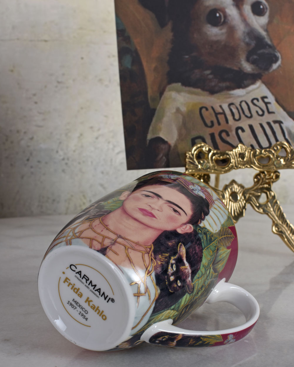 Mit leuchtenden Farben, floralen Mustern und ausdrucksstarkem Design verkörpert der Becher den unverwechselbaren Stil der mexikanischen Malerin – sinnlich, kraftvoll und inspirierend.