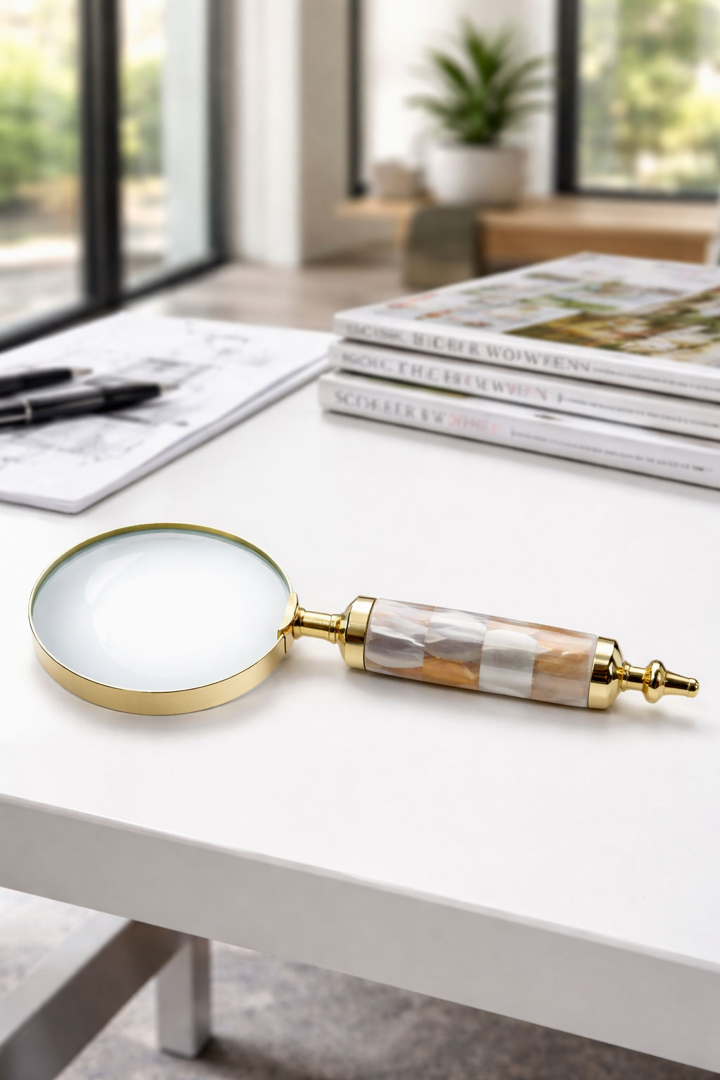 Mit einer Länge von etwa 24 cm liegt die Handlupe ausgewogen in der Hand und wirkt zugleich als stilvolles Objekt auf Schreibtisch, Konsole oder in der Bibliothek.