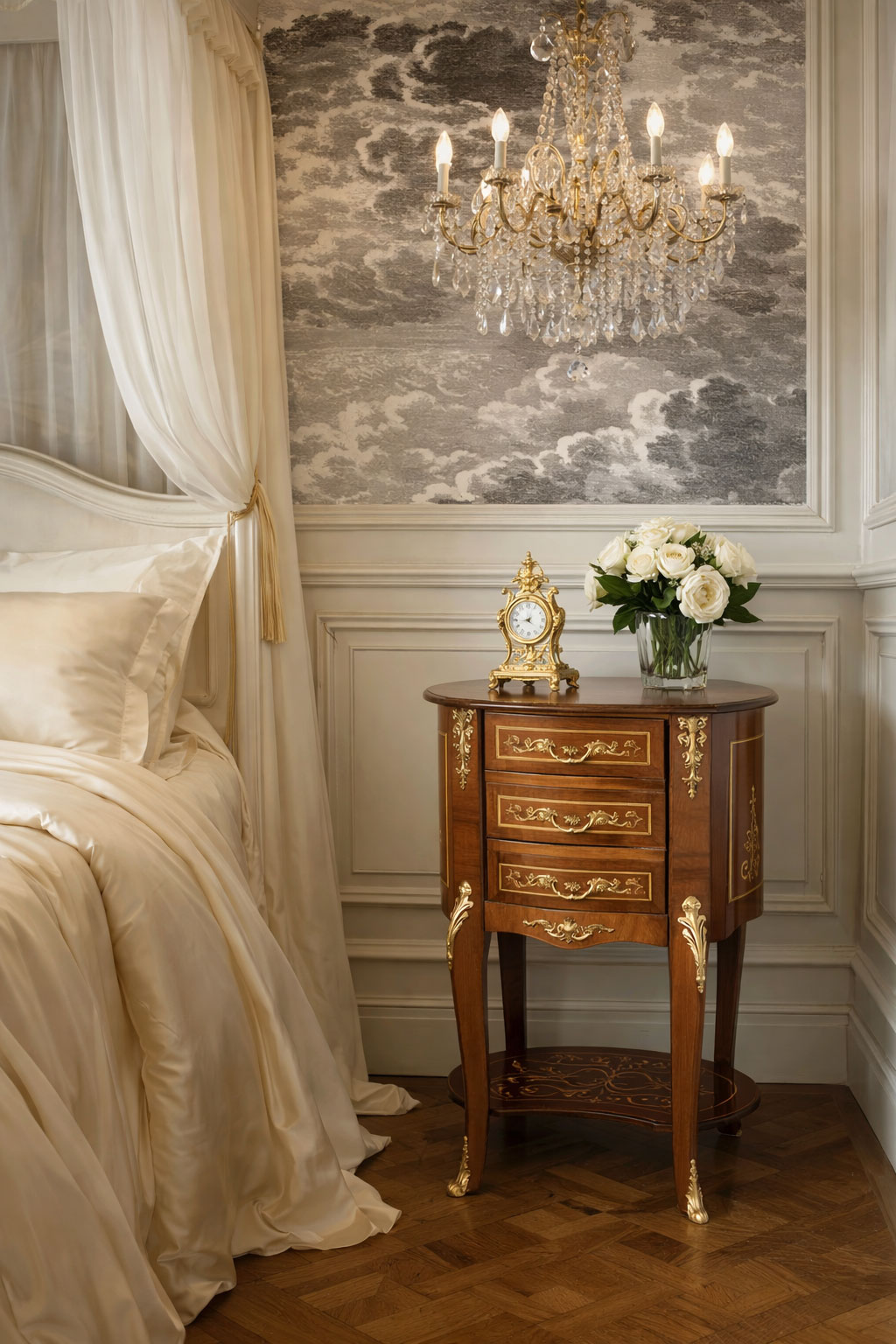 Ob als stilvolle Nachtkommode, eleganter Beistelltisch oder dekorative Konsole – „Madame Isolde“ setzt in jedem Raum einen charmanten Akzent mit französischem Flair.