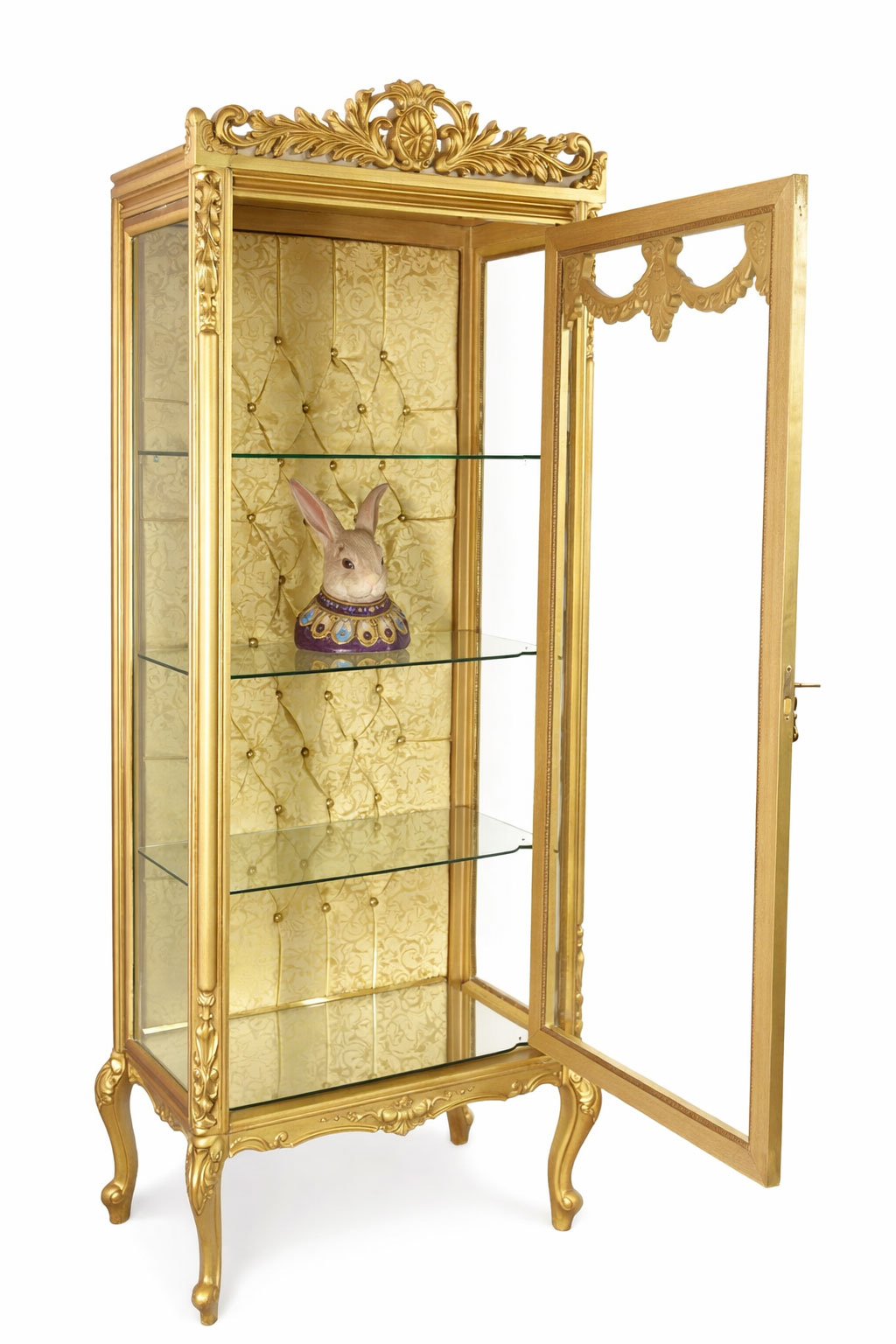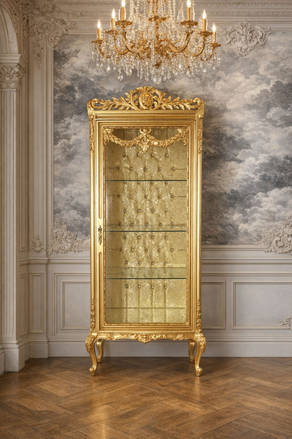 Bringen Sie glanzvolle Barock-Eleganz in Ihr Zuhause: Die Vitrine „Marquise de Pompadour“ vereint edles Massivholz, aufwendige Messingbeschläge und eine fein bemalte Oberfläche. Allseitig verglast und mit Glasböden ausgestattet, setzen Sie Ihre Sammlerstücke oder Dekoobjekte stilvoll in Szene.