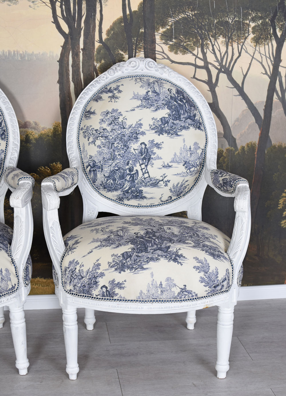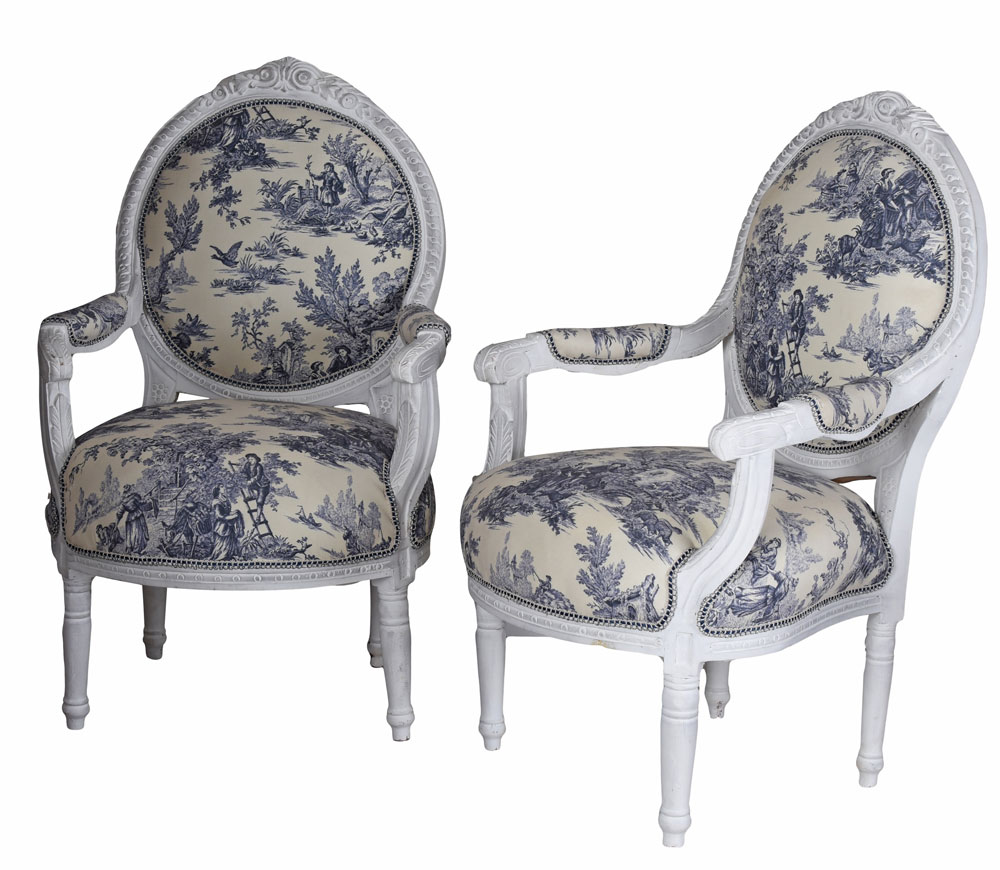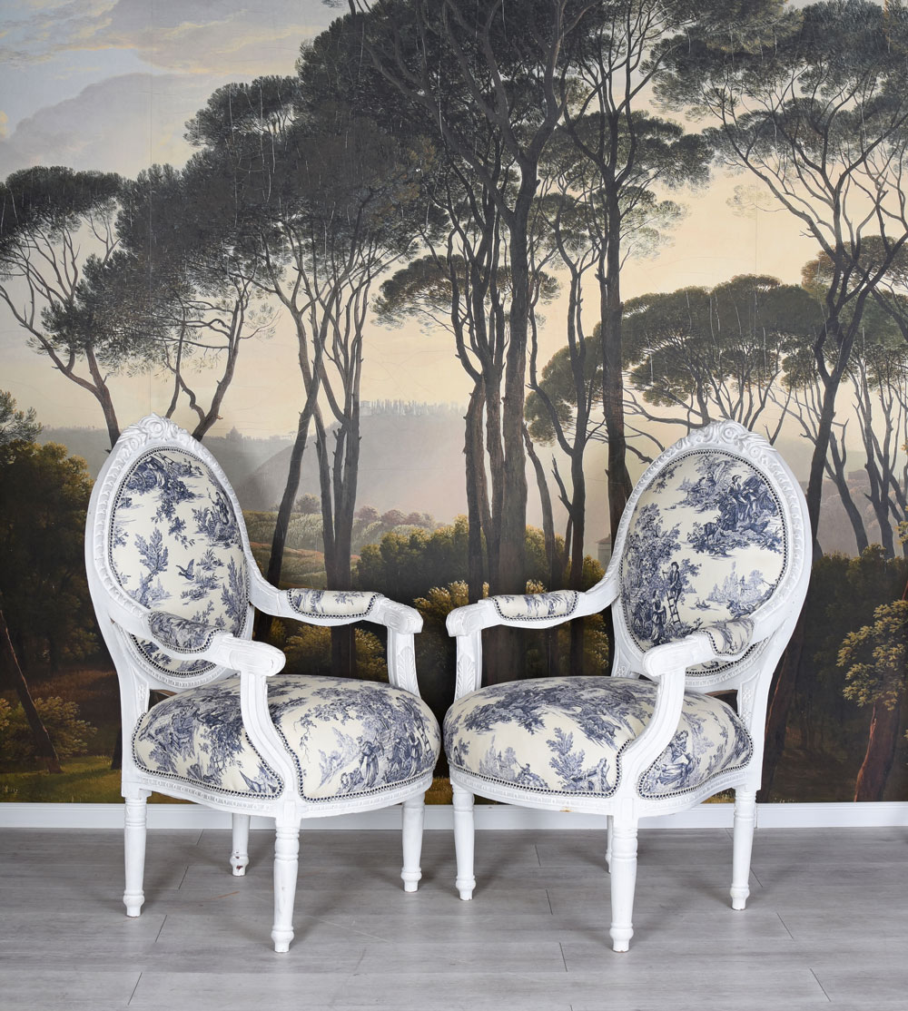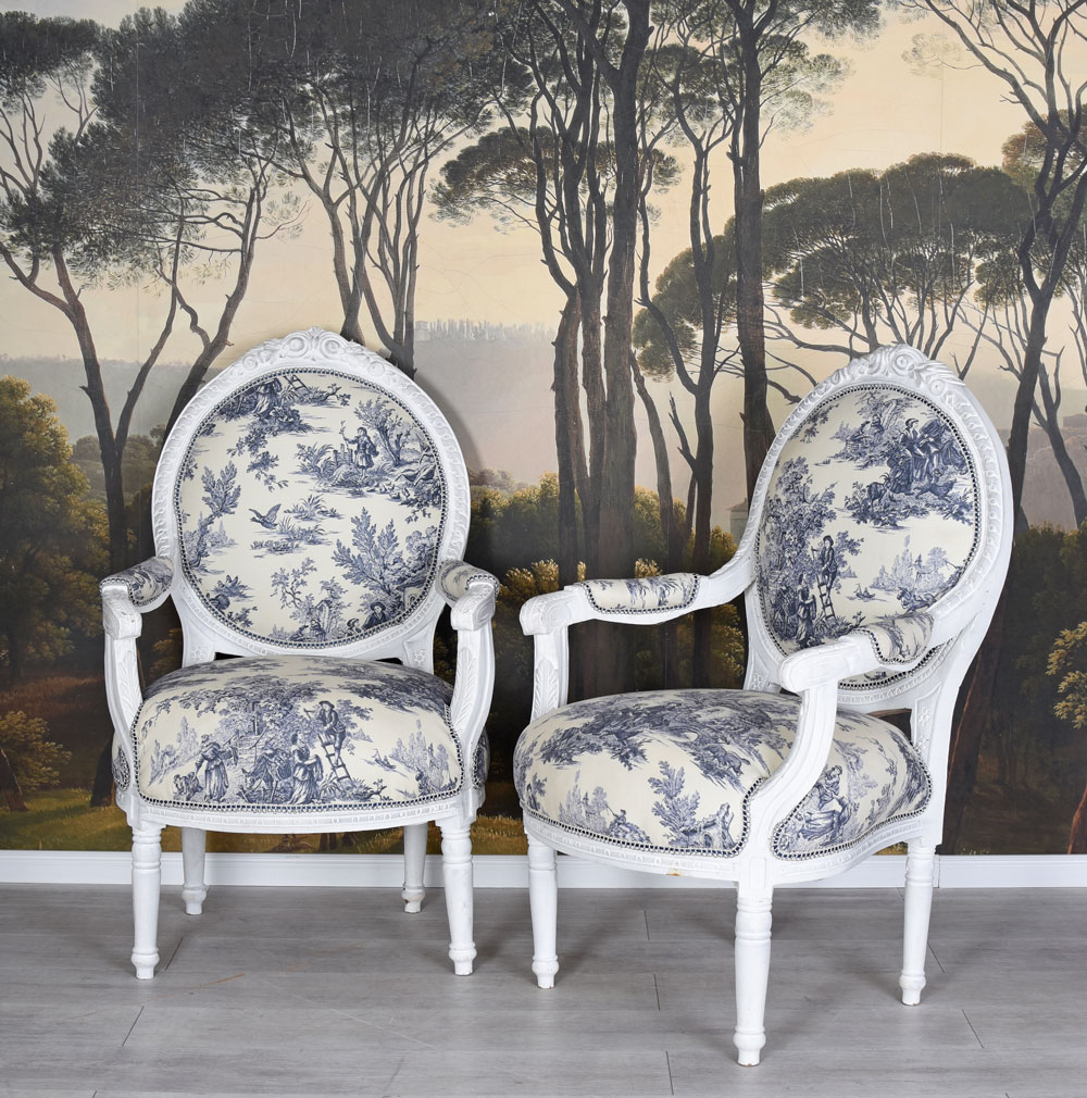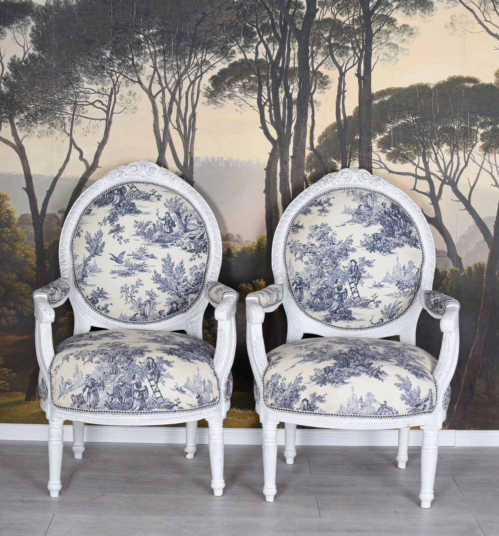 Dieses exklusive Set aus zwei Sesseln ist inspiriert vom Stil des 18. Jahrhunderts und erinnert an die prachtvolle Ausstattung französischer Adelshäuser.