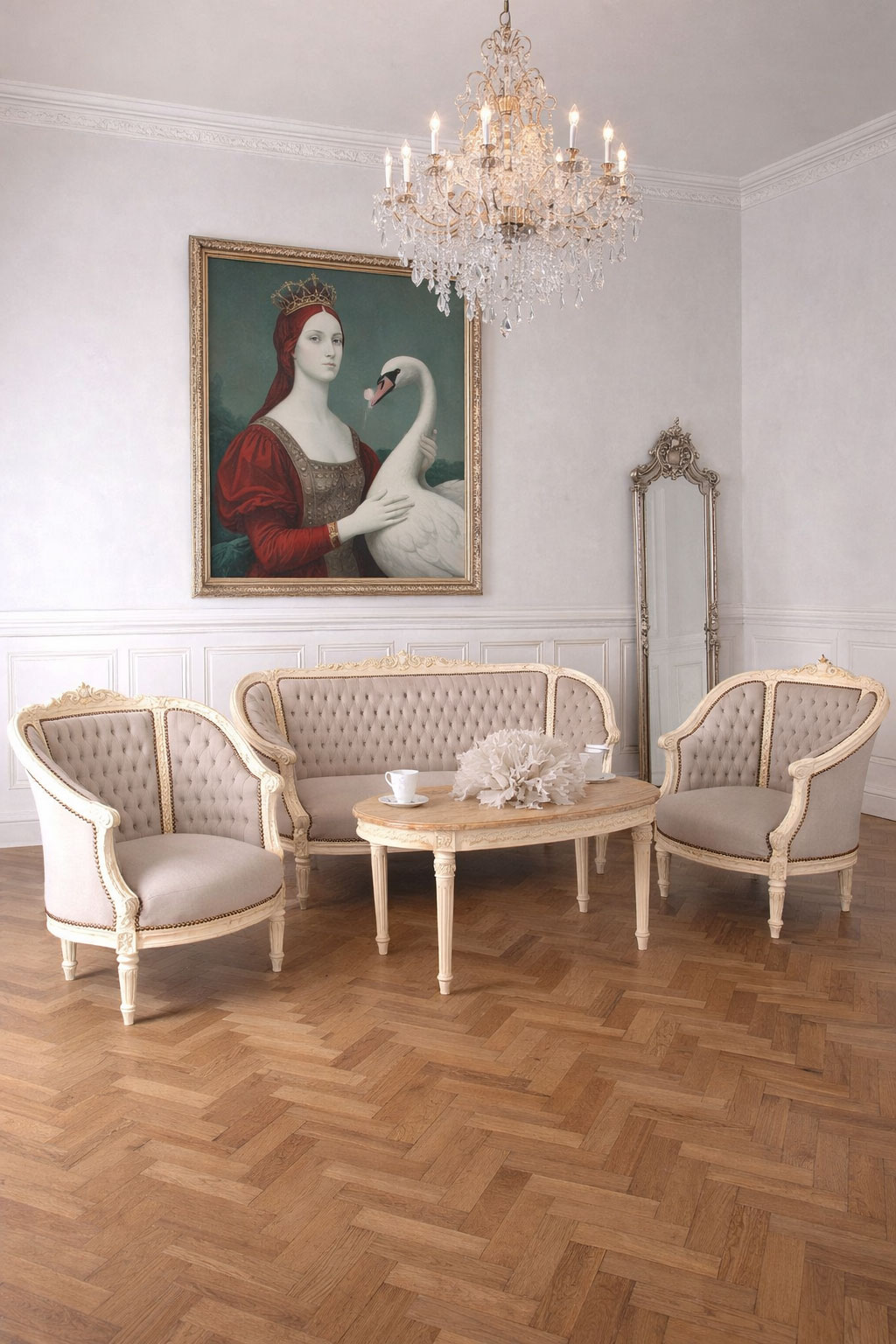 Diese Barock-Sitzgruppe ist ideal für alle, die klassische französische Wohnkultur im Rokoko-Stil mit hochwertigen Materialien und traditioneller Handarbeit schätzen.