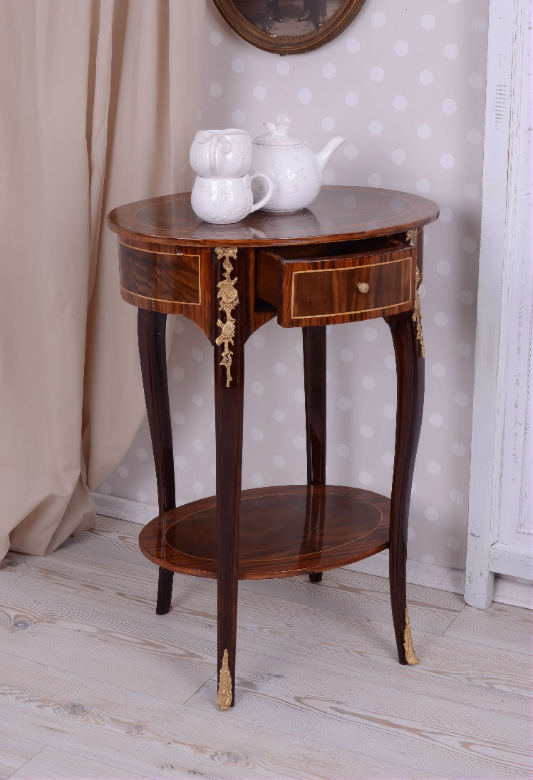 Ob als Beistelltisch, Telefontisch, Konsole oder Teetisch, dieses vielseitige Möbel fügt sich perfekt in klassische wie moderne Interieurs ein. Jedes Exemplar ist handgearbeitet und somit ein echtes Unikat mit individuellem Charakter.