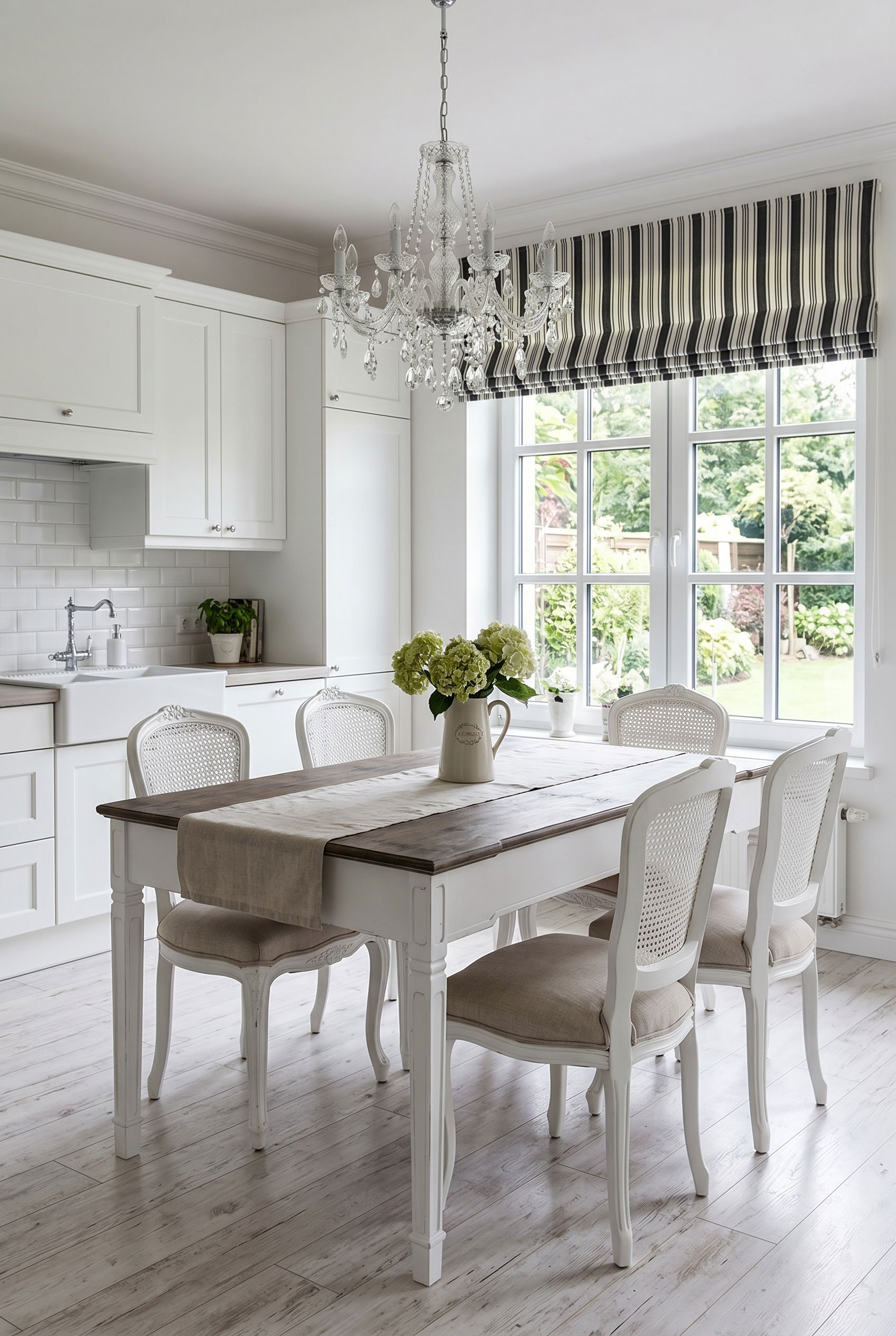 Romantischer Esstisch im französischen Landhausstil – stilvoll und einladend.