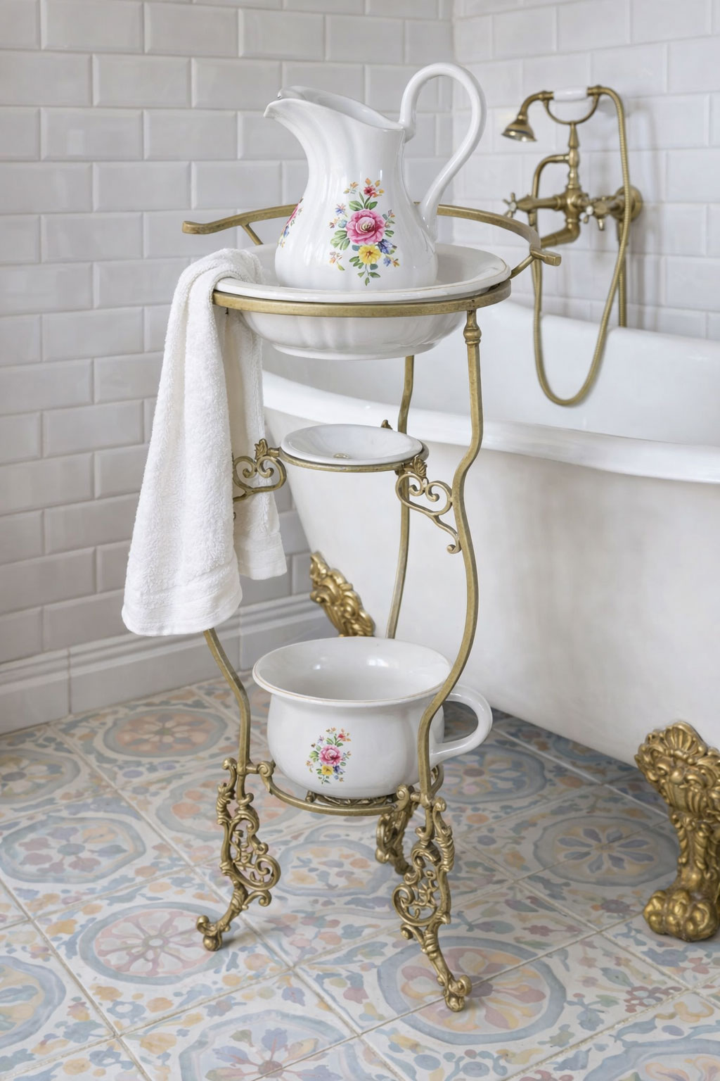 Das Nostalgie Waschset „Chateau Louise“ bringt den Charme klassischer Waschtische vergangener Epochen in Ihr Zuhause.