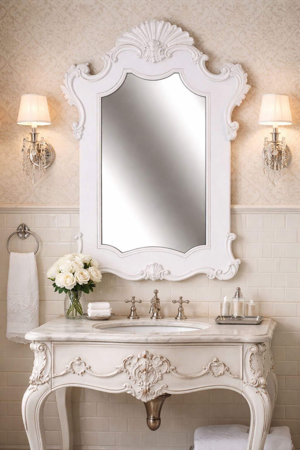 Der Spiegel ist für die Wandmontage vorgesehen und lässt sich harmonisch in romantische, ländliche oder klassische Wohnkonzepte integrieren.
