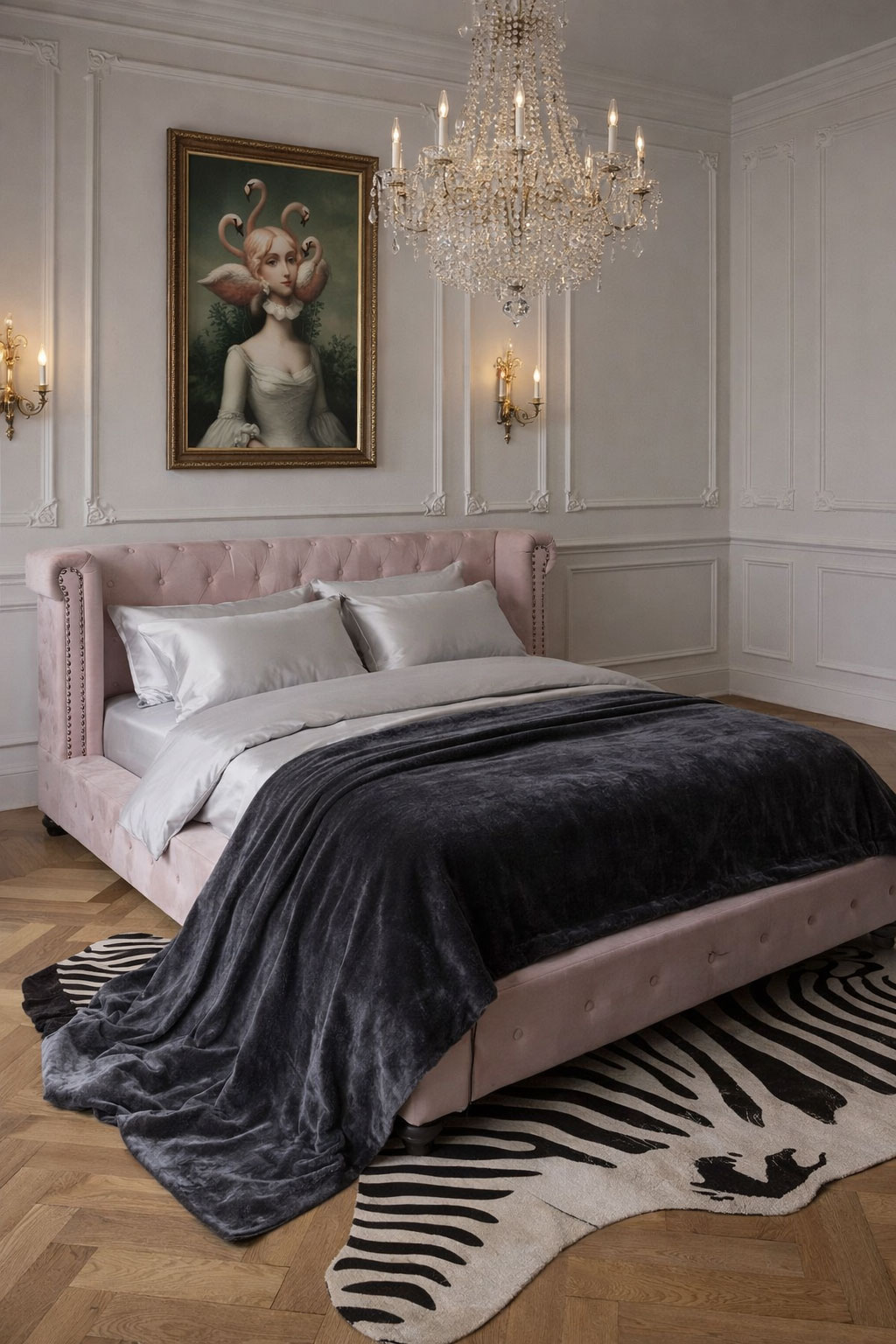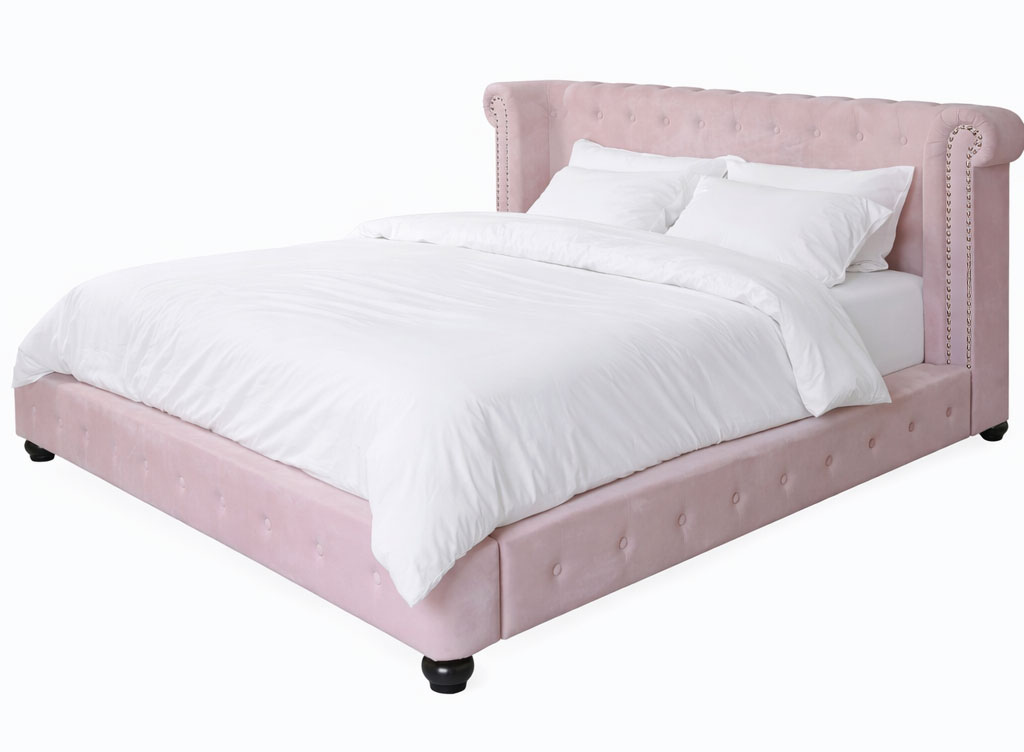 Das Bett „Chateau Marmont“ verbindet samtigen Luxus, markante Chesterfield-Steppung und englische Eleganz zu einem royalen Highlight im Vintage Stil.