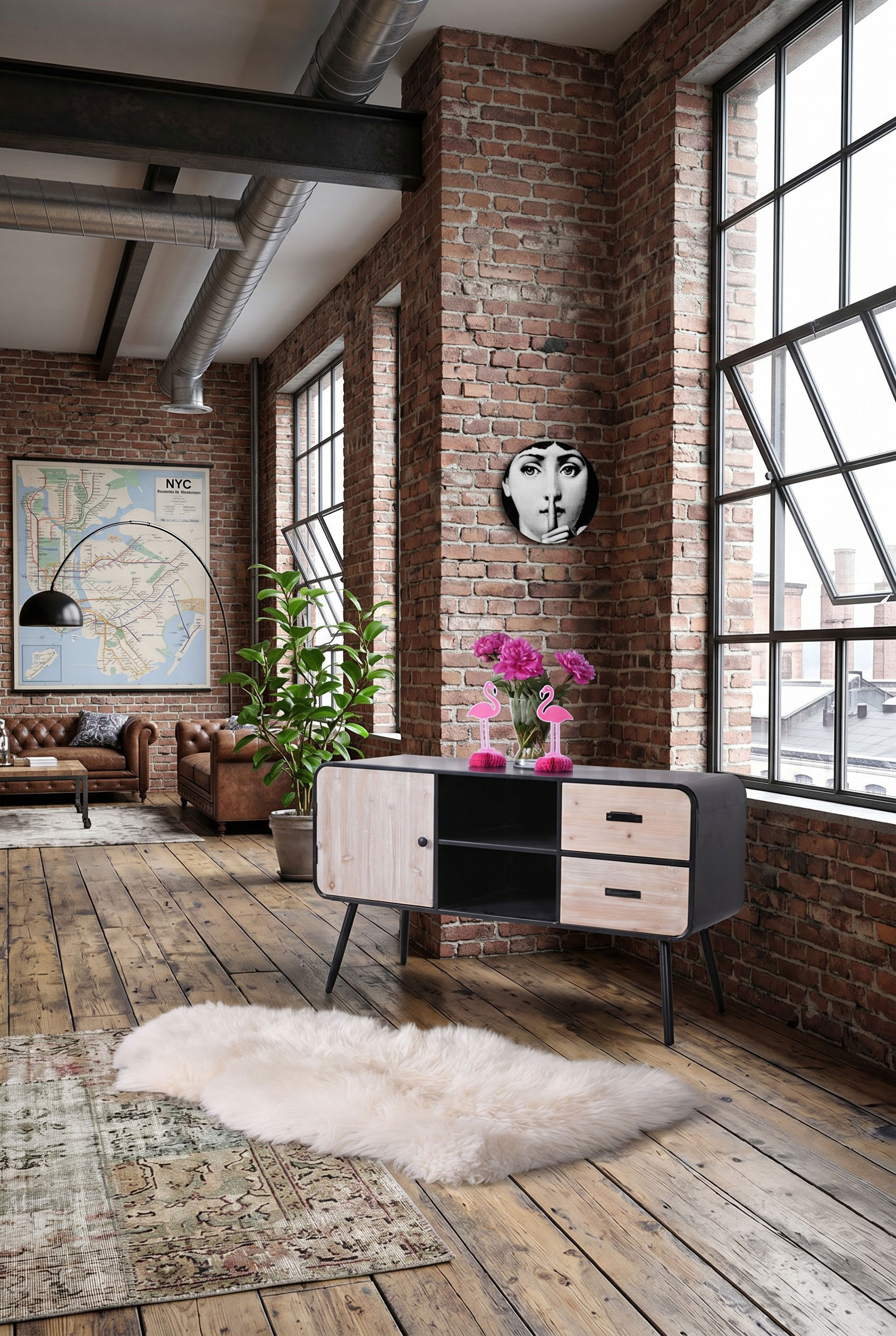 Ob als TV-Möbel, Kommode oder dekoratives Sideboard – „Loft Zimmer“ verbindet Funktionalität mit ausdrucksstarkem Design und bringt urbanen Charakter in Ihr Zuhause.