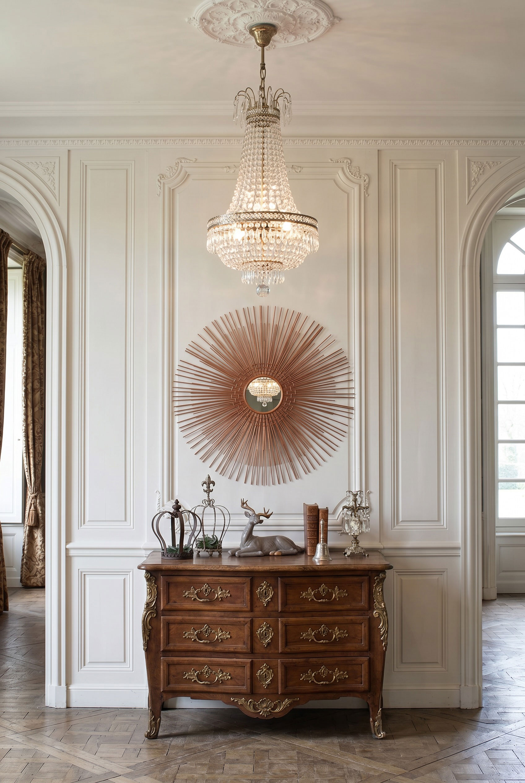 Der Sonnenspiegel „Schloss Neuschwanstein“ ist ein beeindruckendes Wohnaccessoire im romantischen Barockstil und verleiht jedem Raum einen Hauch königlicher Eleganz. Inspiriert von historischen Vorbildern verbindet dieser dekorative Wandspiegel kunstvolle Gestaltung mit nostalgischem Charme vergangener Epochen.