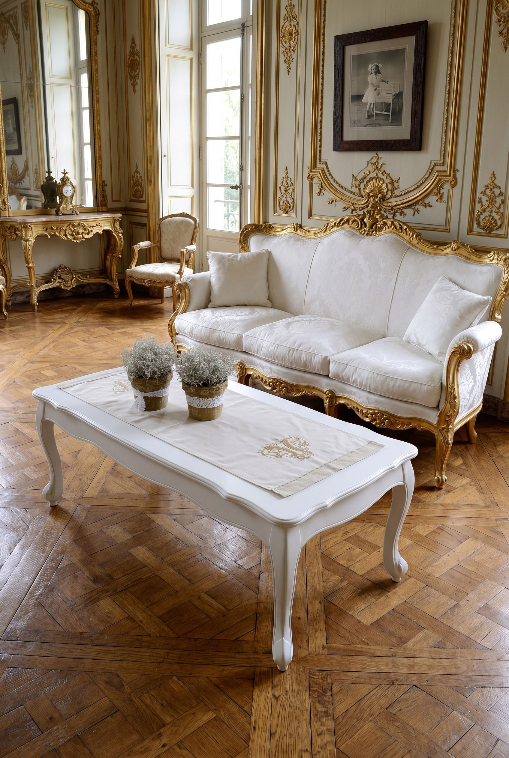 Der Wohnzimmertisch „Maison Shabby Chic“ vereint klassische Eleganz mit romantischem Vintage-Charme und bringt die zeitlose Schönheit des französischen Landhausstils in Ihr Zuhause. Mit seiner harmonischen Form und der bewusst gealterten Oberfläche wird er zum stilvollen Mittelpunkt in jedem Wohnbereich.