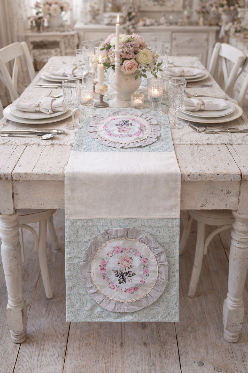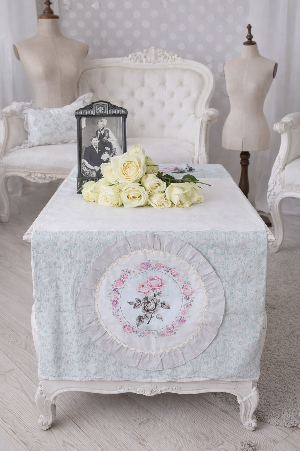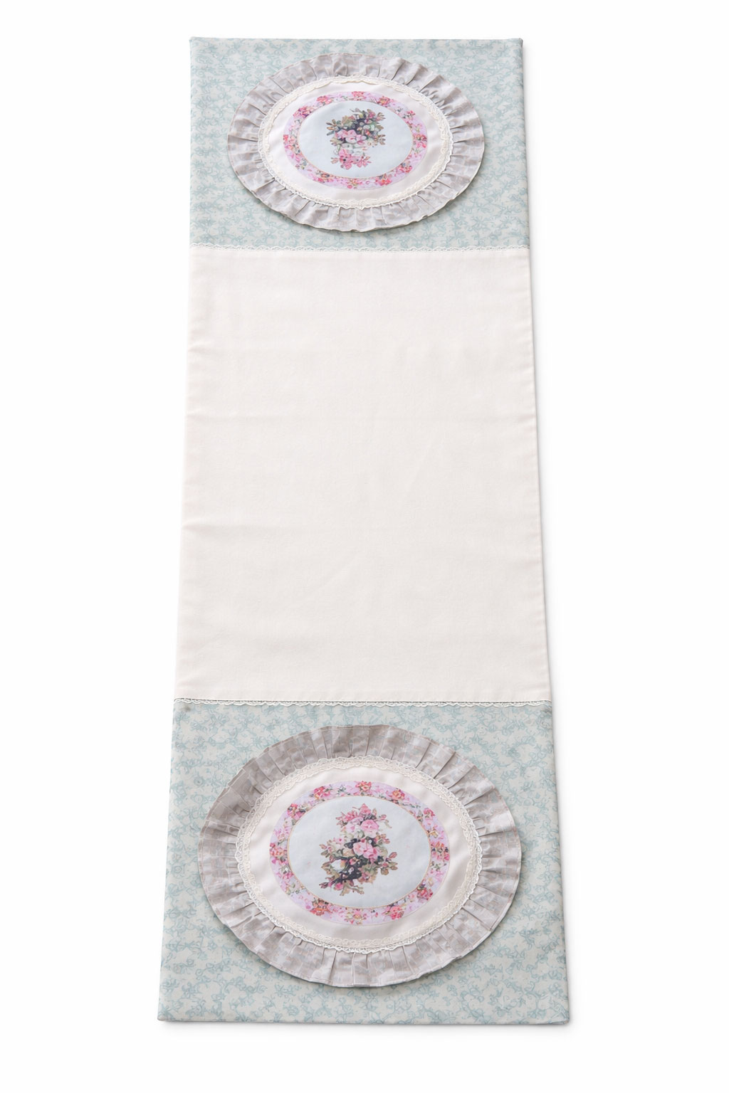 Ob auf dem Esstisch, einer Kommode oder einem Sideboard – dieser Tischläufer setzt dekorative Akzente und passt hervorragend zu Einrichtungen im Shabby Chic, Vintage- und Landhausstil.