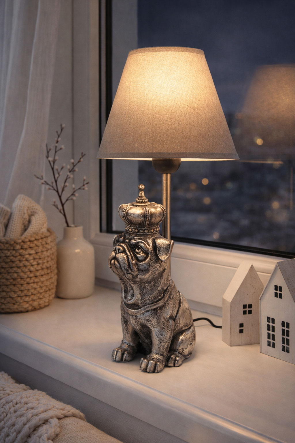 Design: Dekorative Tischlampe mit Mops-Skulptur