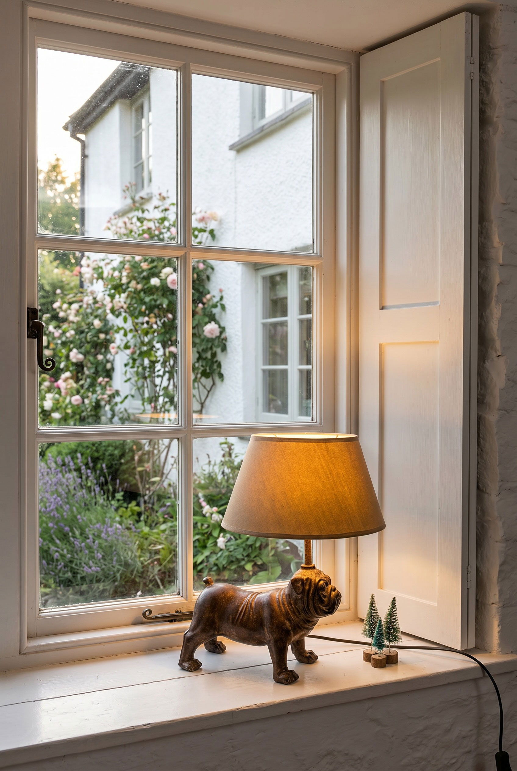 Verspielte Tischlampe mit Mopsfigur – dekorativ, humorvoll und gemütlich.