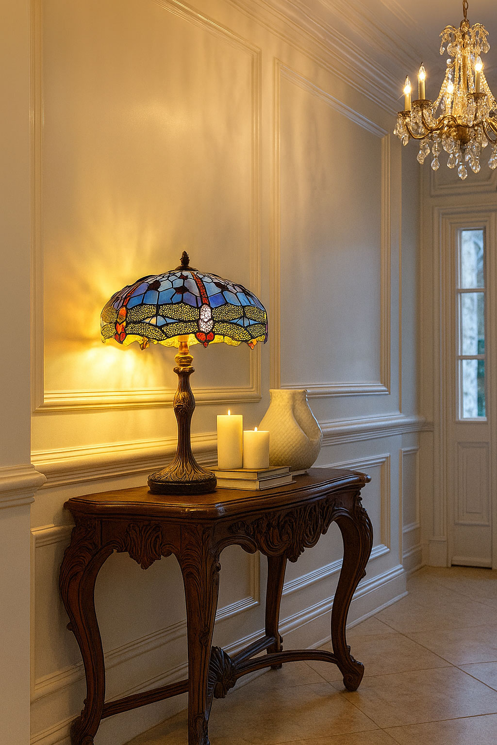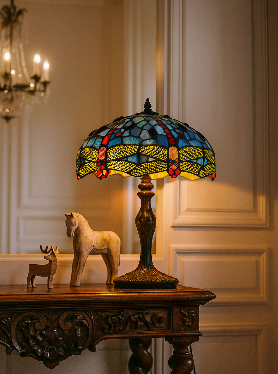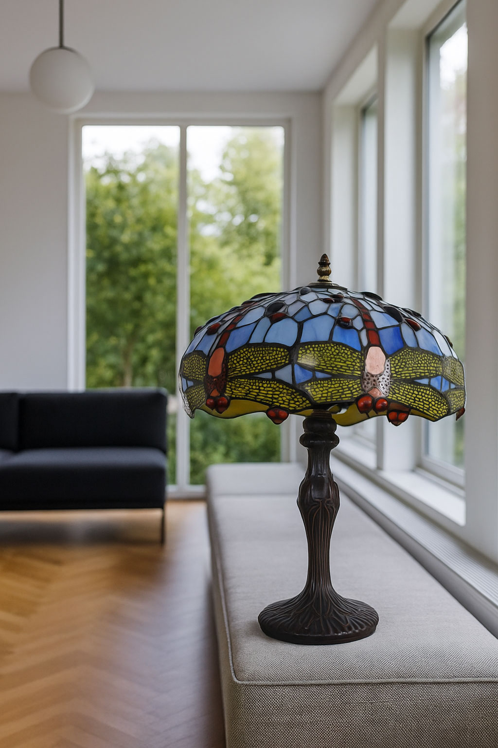 TISCHLAMPE „VILLA TIFFANY“ – Nostalgische Jugendstil-Leuchte mit Libellenmotiv