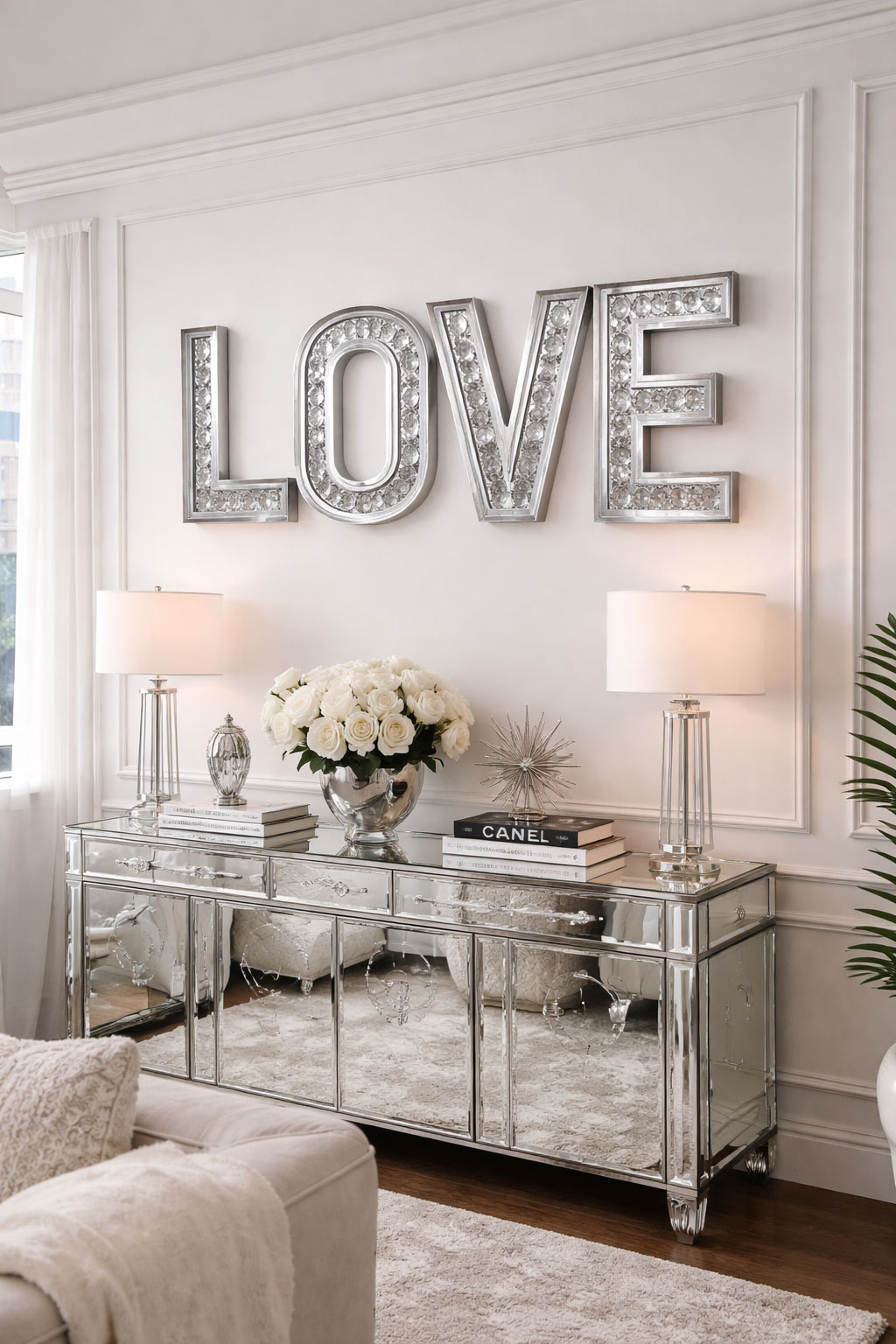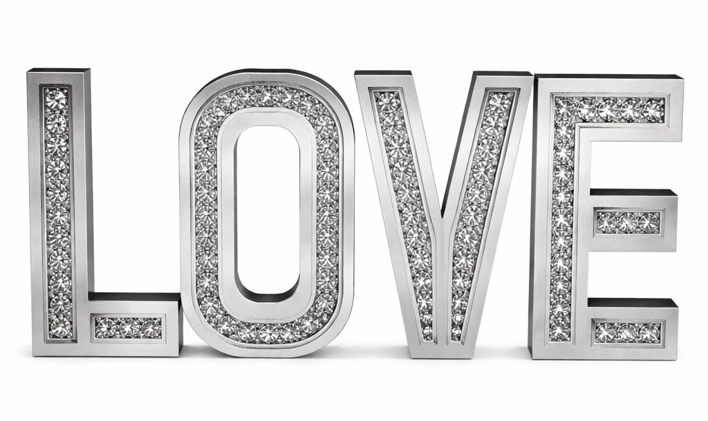 Setzen Sie ein stilvolles Statement mit den verspiegelten „LOVE“-Buchstaben – einer modernen Dekoration mit luxuriösem Flair.