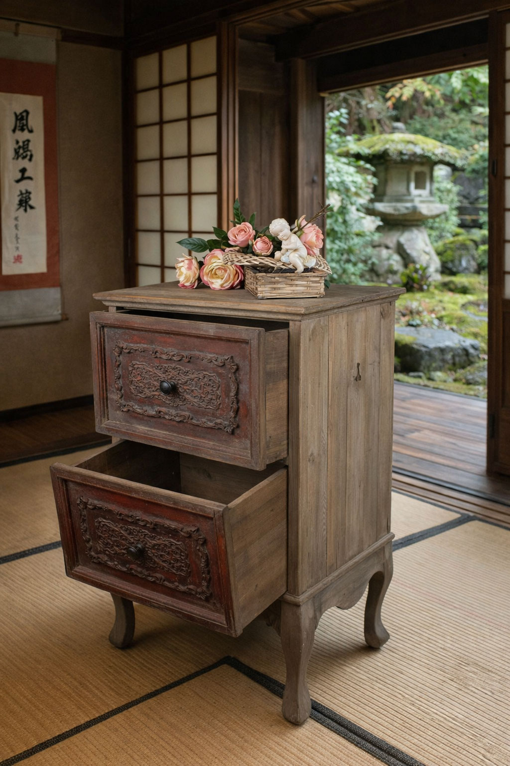 Charmant und ausdrucksstark wirkt dieses neue Stilmöbel wie ein liebevoll erhaltenes Erbstück. Es fügt sich harmonisch sowohl in moderne Wohnkonzepte als auch in antik inspirierte Einrichtungen ein und verleiht jedem Raum eine warme, individuelle Atmosphäre.