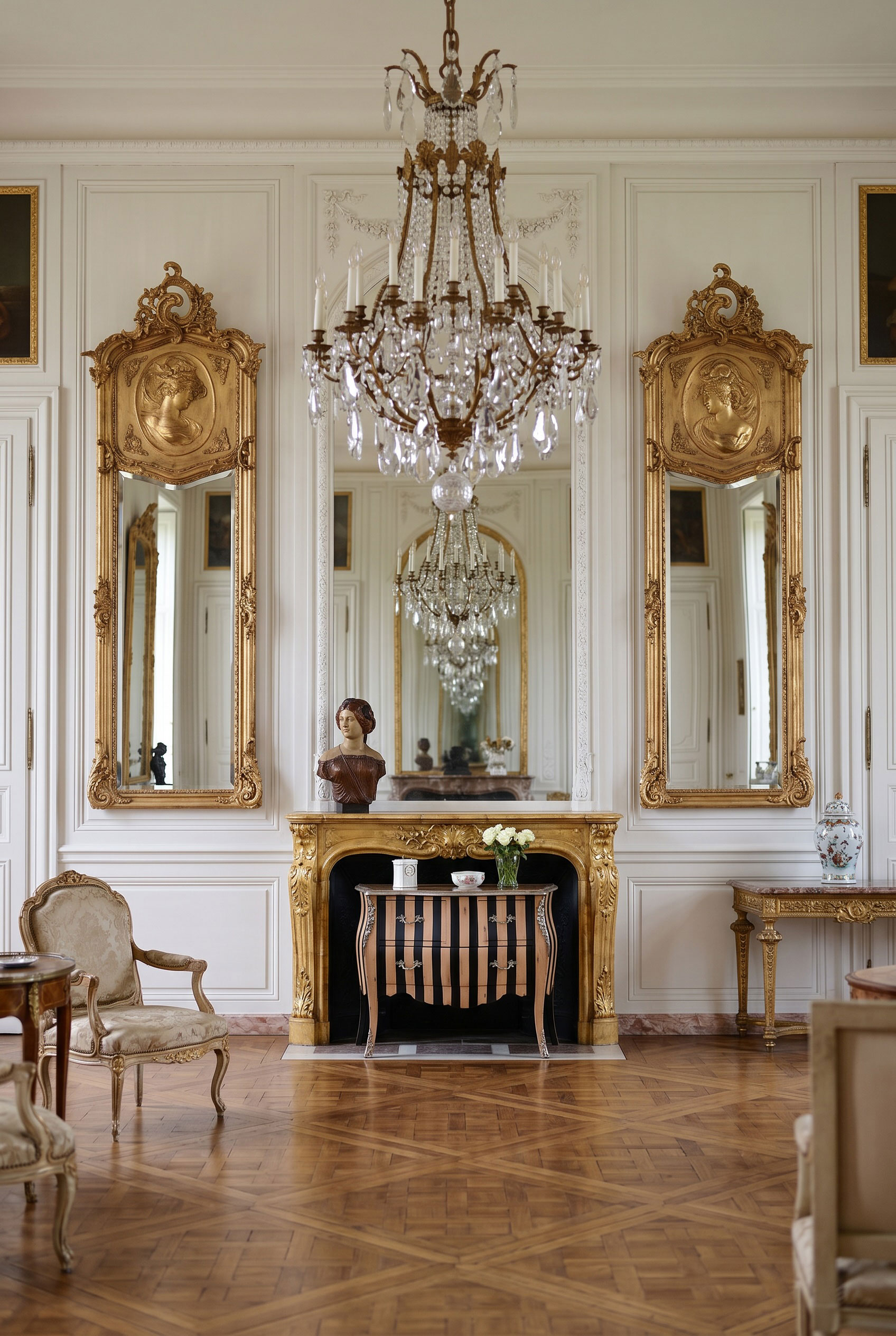Das Spiegel-Set „Chateau Monforte“ begeistert mit monumentaler Größe, edlen Rokoko-Verzierungen und dekorativen Frauenbüsten im Relief – ein aristokratisches Statement für stilvolle Räume.